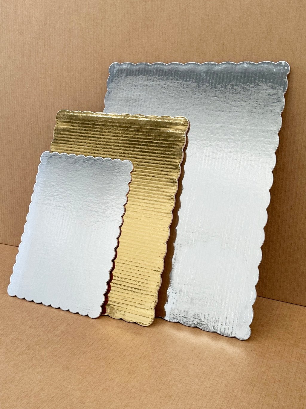 Base de aluminio para pastel rectangular con olán Oro/Plata